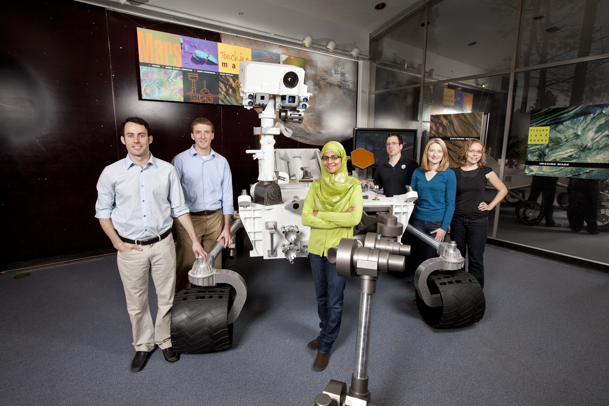 Count the women in this picture–very encouraging! In the background, is the Mars Science Laboratory which is on its way to Mars and set to land on August 5, 2012. (The MSL was built at the Jet Propulsion Laboratory and launched from Kennedy Space Center on November 26, 2011).